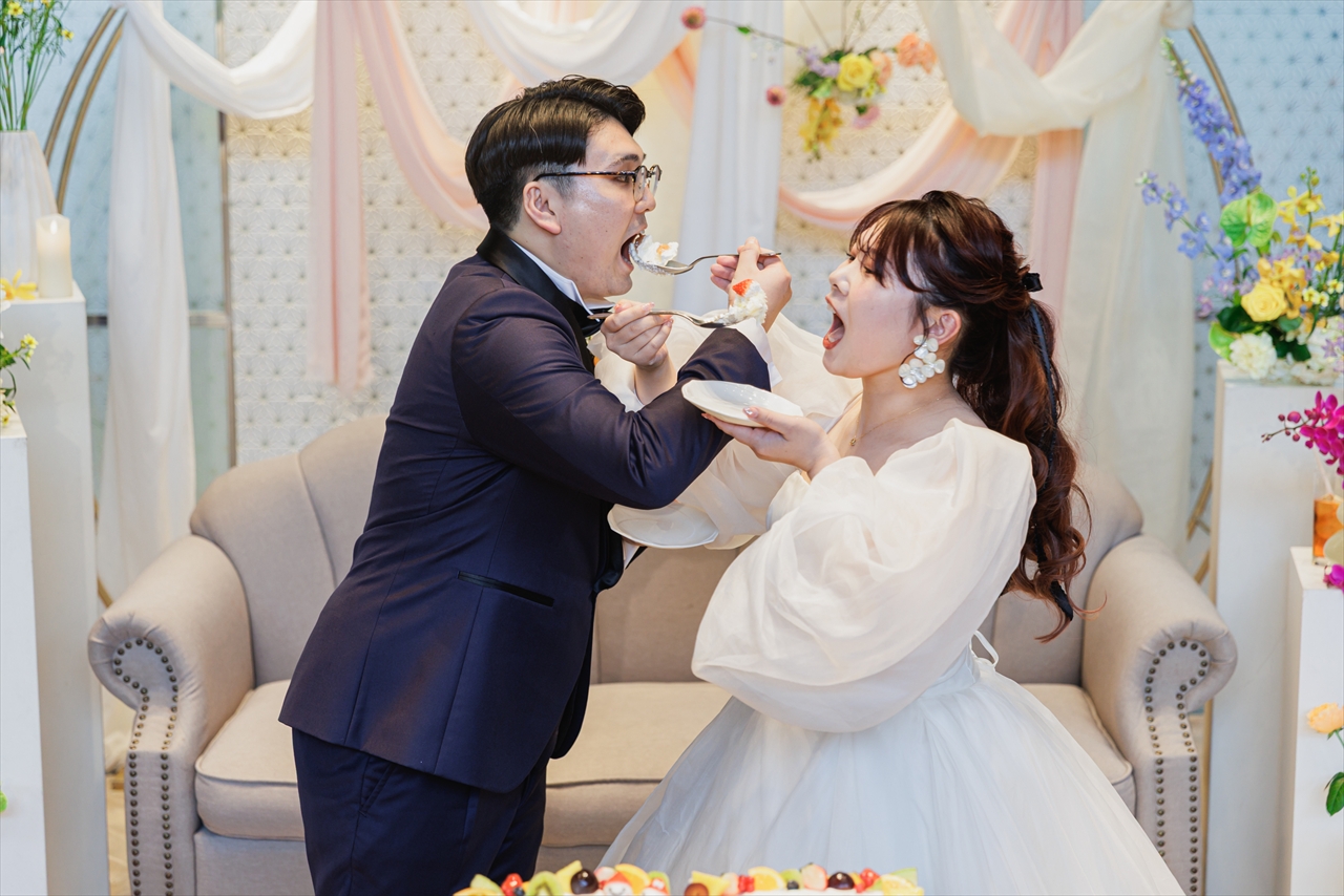 一緒に入場したり おふたりからケーキを食べさせてあげることも!