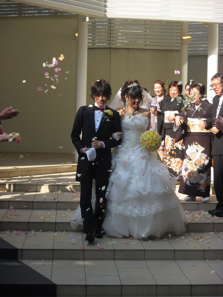挙式の後は、親戚のみなさまにご協力いただいた手作りの折鶴シャワー。