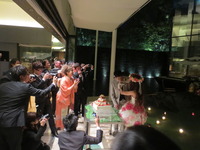 披露宴の始まりの際に配れる食前酒をガーデンでお配りし、ぷち乾杯を行なったり・・。