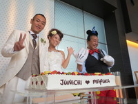 しょういちろうさんとりなさんが結婚式のDVDを受け取りに