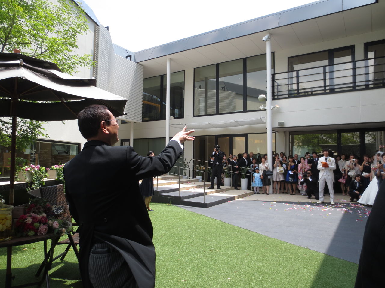 げんさんが入場してお客様からお花を集めているとき