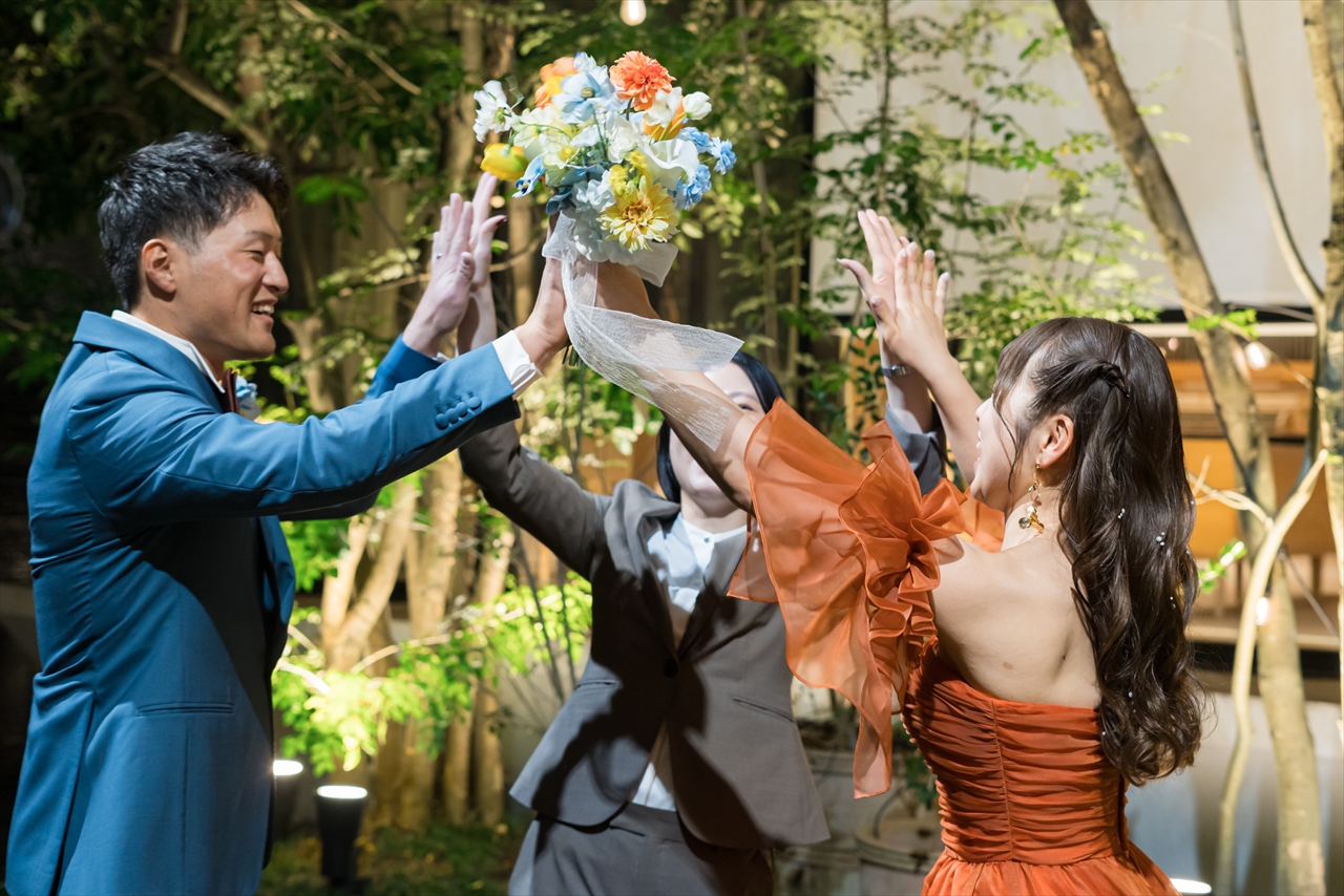 場所をガーデンに移し フラワーシャワーがおふたりを彩ります
